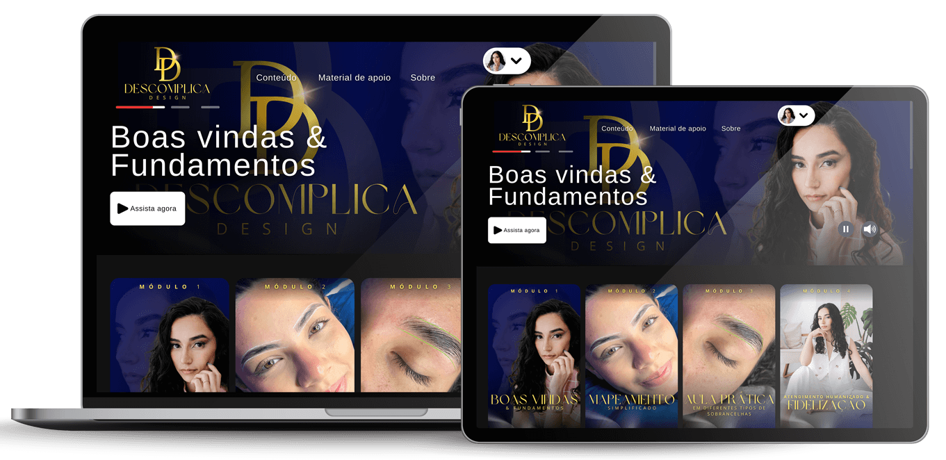 É um curso completo, com aulas gravadas, totalmente focado na prática. Você aprende, aplica e já consegue ver resultado real logo na primeira sobrancelha que fizer.